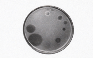 スポット法で観察される円形の斑点は、プラーク法の場合と同じ幾何学を持ちながら、まったく逆の意味を帯びる。寒天上に残るのは、透明な穴ではなく、むしろ黒く濃い円形である。そこには細胞が存在し、寒天にとどまり、生き残っている。