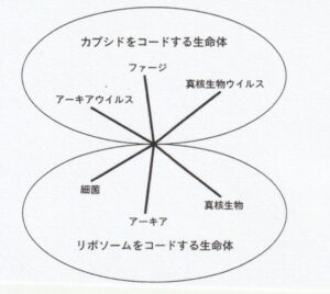 その結果、生命は大きく2つの原理に分けられる。1つは、リボソームをコードする生命体である。これは細菌、アーキア、真核生物を含み、タンパク質合成装置を自らの遺伝情報の中に持つ存在である。3ドメイン論が描いたのは、まさにこの生命体群の進化史である。